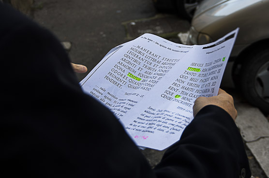 L'ing. Massimo Babudri controlla i testi originali delle epigrafi