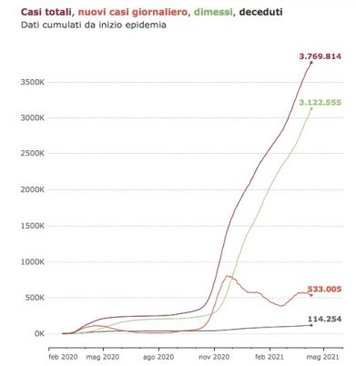 Da alcuni giorni tutta l’Italia è zona arancione: misura misurata, ma inevitabile segnale di “liberi tutti”. Da un paio di giorni questo segnale lo si percepisce con chiarezza: molte meno mascherine, di quelle che restano, molte sul mento; allegri gruppi che percorrono a rastrello i marciapiedi, ecc. Ma i tribuni del popolo si moltiplicano, la gara è a chi chiede la riapertura più presto, purchessia.