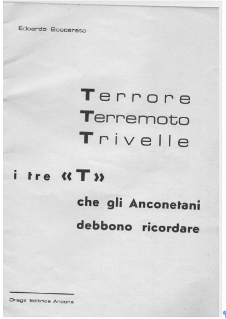 I ricercatori esclusero la causa antropica dei terremoti e invitarono a cercare di conoscere meglio le caratteristiche geosismiche del territorio e la vulnerabilità degli edifici (Kisslinger, 1972). Ma questo non bastò e un gruppo abbastanza agguerrito di cittadini rimase sulla breccia invocando la chiusura delle ricerche in mare; fra questi, il preside di una scuola superiore pubblicò un opuscolo che viene gelosamente conservato da molti anconetani (Figura 5).