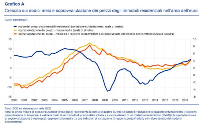 L’ultimo Rapporto annuale della Bce contiene un approfondimento sull’andamento del mercato immobiliare che vale la pena scorrere perché fa il punto su uno dei settori più strategici della crescita presente e, soprattutto, futura. Il 2017 è stato un anno buono, si potrebbe dire semplificando, perché ha confermato un’espansione ciclica iniziata già da qualche anno che si sta svolgendo sotto l’egida di prezzi che, nell’aggregato dei paesi EZ, crescono in maniera frizzante iniziando a mostrare segnali di sopravvalutazione. Non siamo ai livelli pre crisi, ma il trend sembra accelerare di anno in anno.