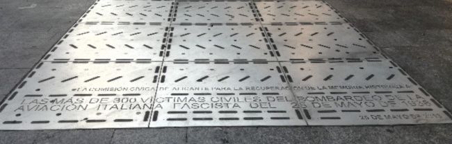 Per chi si reca in Spagna, tuttavia, non è vano andare a visitare i luoghi della guerra, laddove sono ancora conservati; e sono molti. Ad Alicante, ad esempio, una lapide ricorda le vittime civili dei bombardamenti dell’aviazione italiana che aveva le sue basi a Majorca (lo schizzo è tratto da un documento italiano (rintracciabile in https://docplayer.es/78101418-La-guerra-acaba-en-alicante.html) e che fece centinaia, forse migliaia di vittime civili in tutta la costa mediterranea.
