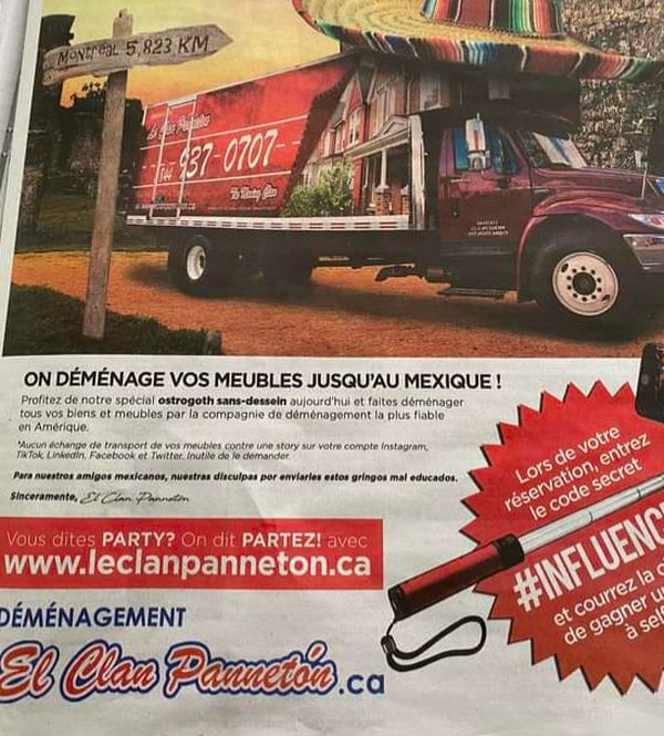 Una ditta di trasporti di Montréal (reale) ne ha approfittato per fare della garbara ironia sulla vicenda.