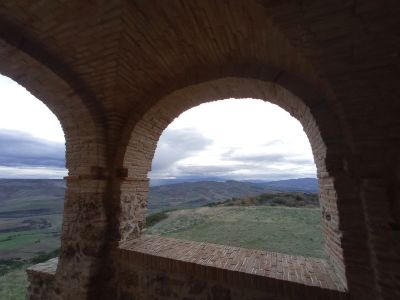 Di fianco a una scaletta, su un piccolo scosceso angolo di terreno, Giovanni, anziano signore, reggendosi a un bastoncino che era stato un ombrello, raccoglie verdure selvatiche. Lo aiutiamo a scendere, proseguiamo e, dopo pochissimo, arriviamo al castello. Ampio spiazzo ben pavimentato davanti. Edificio ristrutturato ma che, da molto, castello non è più, abitato per qualche tempo anche da famiglie del posto. Fra queste, quella di Aldo. Mi mostra altri monumenti che spiccano nel vecchio centro davanti a noi. In particolare, la Chiesa Madre con il convento dei frati domenicani, parte del quale comprato da Dan, americano che ne farà forse residenze.
