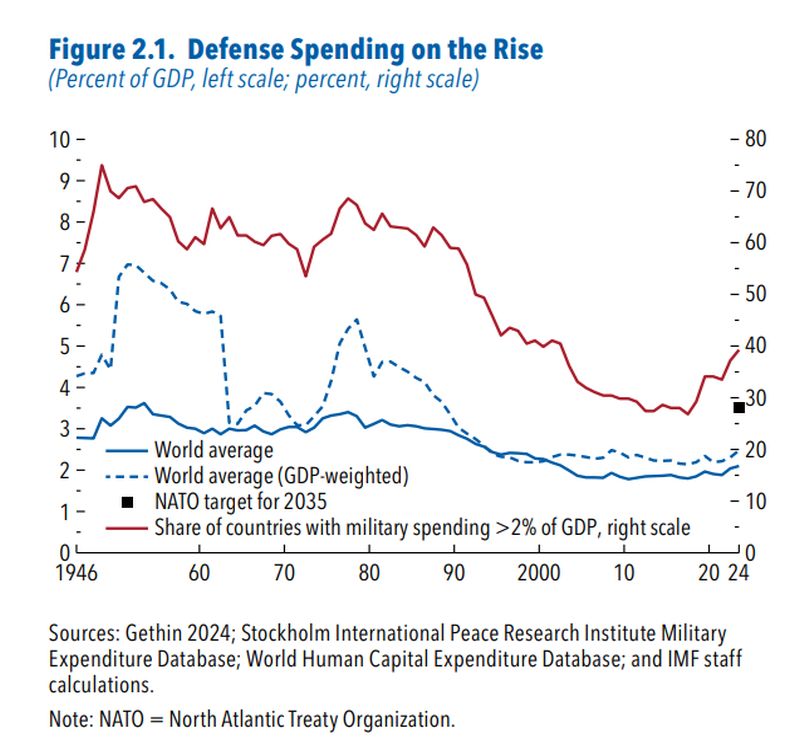 L’ombra della guerra, scrive pudicamente il fondo, ma soprattutto l’economia globale, che chissà come prenderà questa iniezione di miliardi che il settore dell’industria militare sarà chiamato a digerire. E non solo. Pensate alle catene di fornitura, ai riflessi finanziari che sono destinate ad originare. Ma soprattutto è quasi commovente che ci siano ancora istituzioni che si preoccupano dell’economia globale, quando pare evidente che ormai quelli che contano, che poi sono quelli che usano la forza, semplicemente se ne infischiano.