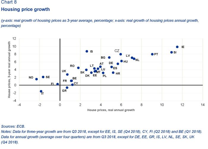 Nei mesi scorsi, infatti, il report pubblicato dall’European Systemic Risk Board indicava chiaramente alcune delle linee di faglia del mercato immobiliare europeo, che si concentravano in quei paesi dove i prezzi erano cresciuti notevolmente insieme al livello di debiti privati sottoscritti per assecondarne gli andamenti.