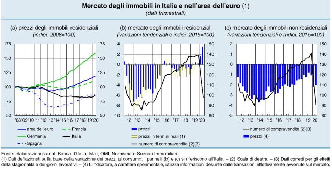 L’ultimo rapporto sulla stabilità finanziaria diffuso da Bankitalia ci consente di aggiornare lo stato delle nostre informazioni sul mercato immobiliare italiano, uno dei grandi malati d’Europa, che ovviamente ha visto le sue condizioni peggiorare a causa della pandemia.