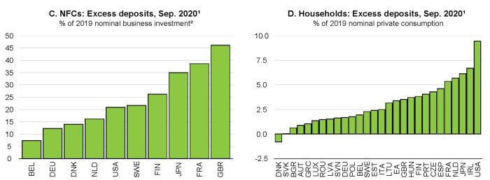Sia famiglie che imprese hanno potuto risparmiare di più anche perché i governi hanno rilassato gli obblighi fiscali, lasciando quindi nelle loro tasche maggiore liquidità per la gestione delle emergenze.