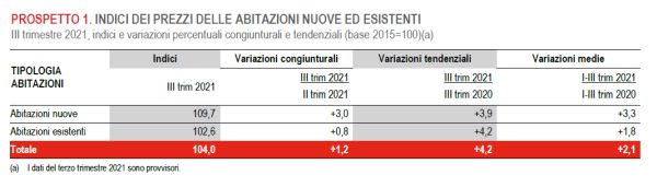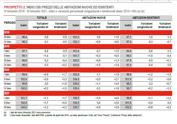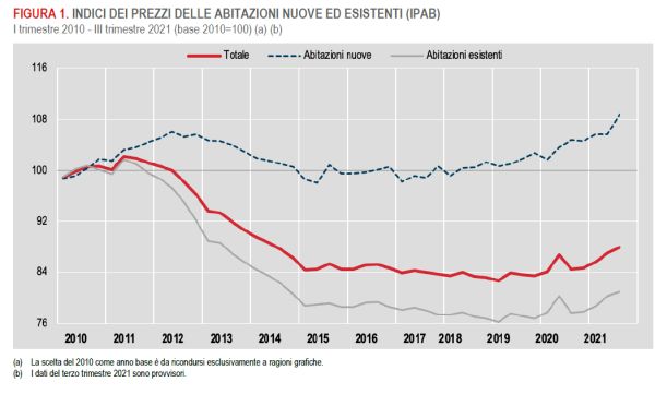 Meglio tardi che mai, viene da dire guardando il progresso dell’indice Ipab costruito da Istat per monitorare i prezzi delle abitazioni, nuove e usate. I dati rilasciati alcuni giorni fa sul terzo trimestre 2021 confermano il trend ascendente dei corsi immobiliari, aumentati del 1,2% rispetto al secondo trimestre e del 4,2% rispetto al terzo trimestre 2020.