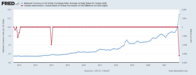 Il fatto è preoccupante, visto che il dato di gennaio dell’inflazione turca, rilasciato di recente, porta l’indice di crescita annuale dei prezzi al 48,7%, più che raddoppiato rispetto al 21% di novembre. La Turchia, insomma, è nel pieno di una crisi inflazionistica che procede di pari passo con l’andamento della lira turca, che ha perso tantissimo valore malgrado i rilevanti interventi della banca centrale turca, che ha venduto valuta estera per sostenere il cambio.