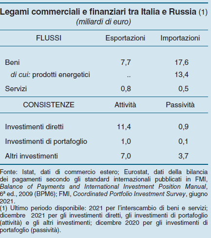 italia russiaVisto il gran parlare di questi tempi circa i rapporti che ci legano alla Russia, e che la guerra ha trasformato in un notevole problema non tanto (non ancora) economico, quanto politico, vale la pena scorrere il breve approfondimento contenuto nell’ultimo bollettino di Bankitalia dove si forniscono i dati aggiornati del nostro interscambio con Mosca.