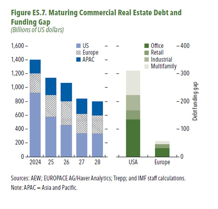Quest’anno sono venuti a maturazione debiti per 1.400 miliardi legati a questo settore, la gran parte dei quali negli Usa, e pure se questa montagna è vista in calo nei prossimi quattro anni, esiste una sostanziale carenza di finanziamenti (funding gap) determinata dalla crescente riluttanza delle banche a legarsi mani e piedi con un settore che mostra molte fragilità. “Sia le banche con concentrazioni sproporzionate in CRE (Commercial Real Estate) che gli investitori non bancari come i trust di investimento immobiliare potrebbero subire tensioni”, avverte il Fmi. E certo le ragioni per temere scossoni da questa costola del settore immobiliare sono diverse.