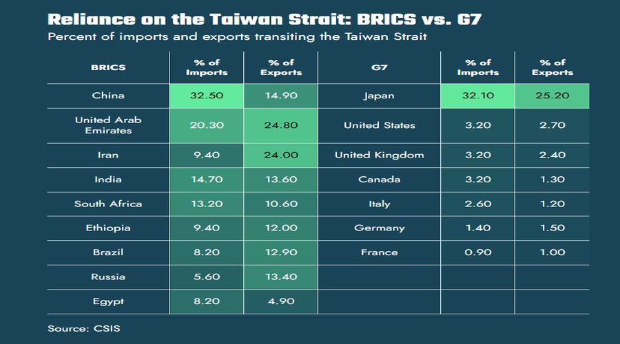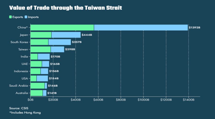 I dati racconti dal Csis sono molto eloquenti. Ogni anno si stima che le merci su container che solcano i mari quotino circa 11,5 trilioni di dollari in valore. Il flusso che attraversa lo stretto di Taiwan vale circa un quinto – 2,45 trilioni nel 2022 – e già questo basta a comprendere come una crisi in questo stretto avrebbe effetti assai più che regionali. Per dirla con le parole del Csis “impatterebbe su alleati chiave degli Stati Uniti e ampie fasce del sud del mondo”.