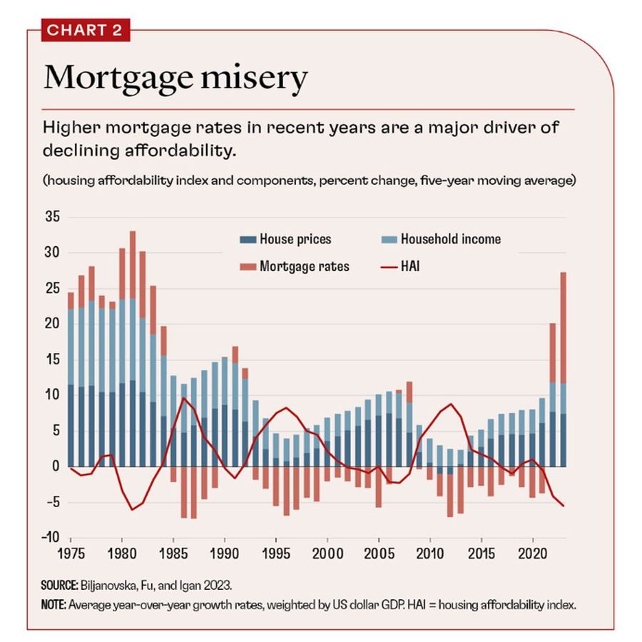 Secondo questa ricostruzione, il momento saliente è stato il dopo pandemia, che insieme all’inflazione, a sua volte causa delle pesanti restrizioni monetarie varate dalle banche centrali ha innescato “la peggiore crisi di accessibilità economica degli alloggi al mondo in più di un decennio”. Un altro ingrediente nella diffusa crisi da risentimento che sta scuotendo le fondamenta delle società ad economia più avanzata.