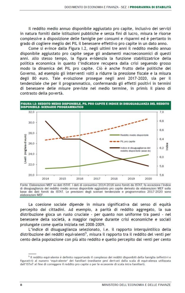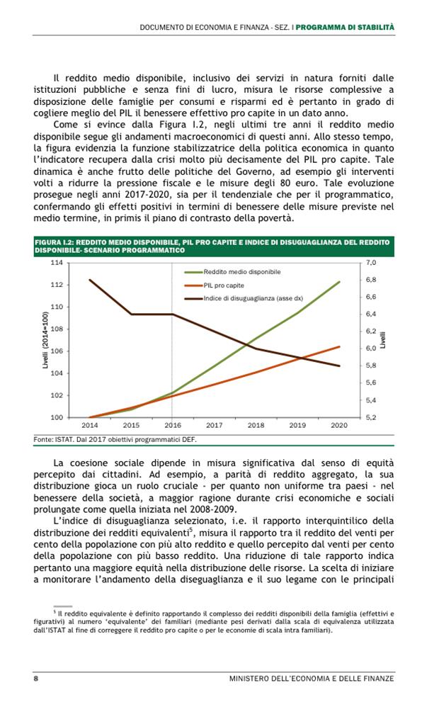 Al di là di questo spiacevole episodio, sarebbe stato opportuno che fossero esplicitati i motivi per i quali il reddito medio annuo pro capite indicato nel Def è maggiore di 3.500 euro rispetto all’omologo indicatore valutato dall’Istat nel Rapporto sul Bes.
