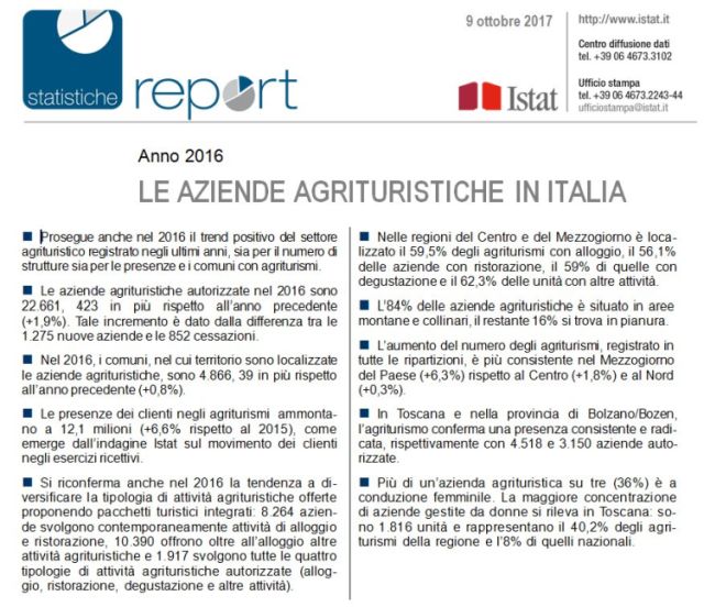 Con la produzione tedesca ai massimi dal 2011, mi si abbatte l’orgoglio nazionale, visto che da noi al massimo si parla di banche e Npl (le famose sofferenze bancarie che ormai sono diventate anche le nostre). Ma poi, per fortuna, arriva l’Istat che ci regala la sua perla quotidiana di ottimismo e fiducia, andando a pescare fra le pieghe della contabilità pubblica, sempre quello che non ti aspetti. E questa stavolta supera se stessa: oggi ha trovato gli agriturismi.