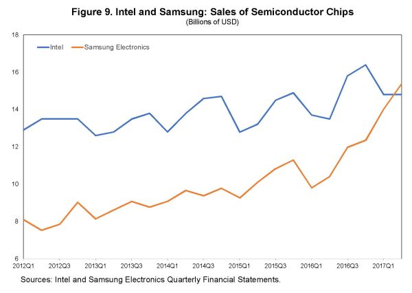 Un mercato dove Apple fa la parte del leone. A proposito, ma gli IPhone (tutti) prodotti in Cina sono meno pericolosi dei Huawey? O il fatto che la Samsung abbia stracciato la Intel nella vendita di semiconduttori è un pericolo per la sicurezza nazionale?