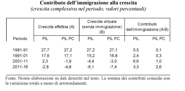 “Particolarmente importante - scrivono - è risultato il contributo alla crescita del PIL nel decennio 2001-2011: la crescita cumulata è stata positiva per 2,3 punti percentuali mentre sarebbe risultata negativa e pari a -4,4 per cento senza l’immigrazione”. E questo merita di essere sottolineato.