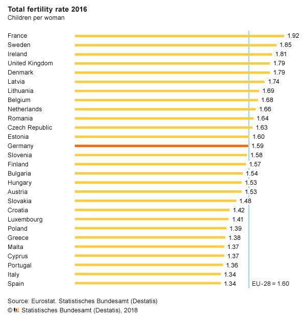 Quando si crede di aver ormai letto tutto sui rischi connessi alla grave denatalità che affligge il nostro paese, esce un bel paper di Bankitalia che ci mostra un aspetto finora poco osservato, ossia l’influenza che tale situazione ha sul livello della nostra crescita economica, presente ma soprattutto futuro. Cominciamo da un dato, riportato dall’istituto tedesco di statistica che fotografa bene la nostra situazione: siamo il fanalino di coda in Europa, insieme con la Spagna, per indice di fertilità.