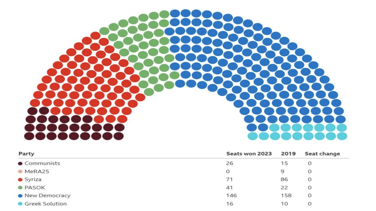 L'estrema destra è cresciuta sfiorando il 13% e con l'entrata in parlamento, oltre a Soluzione Ellenica e la nuova formazione Niki, del partito degli Spartani erede del neonazista Alba dorata. La sinistra, divisa fra Syriza (17,84%) - che ha lasciato sul campo altri 2 punti abbondanti di percentuale rispetto a maggio - Pasok (11,85%), comunisti del Kke (7,69%) e MeRA25 di Varoufakis (2,5% circa) che però non raggiunge la soglia di sbarramento del 3% rimanendo fuori del parlamento, raggiungerebbe poco più del 40,5% di Nuova democrazia.