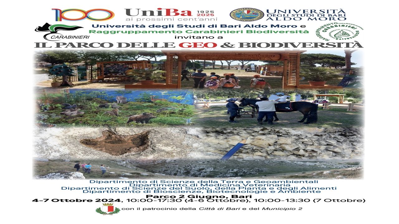 Presso il “Parco 2 Giugno” di Bari (Via della Resistenza n. 154), ad iniziativa dell’Università degli Studi di Bari Aldo Moro e del Raggruppamento Carabinieri Biodiversità, dal 4 al 7 ottobre prossimo, si svolgerà un importante evento, con ingresso gratuito, dedicato alla tutela del patrimonio ambientale.