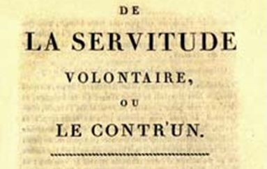 La sua non è un’analisi dei meccanismi che giustificano il potere, ma un’indagine sul mistero per cui gli uomini, eliminando la loro libertà, permettono certe forme di potere. Queste, per l’autore, non sono possibili per la sapiente combinazione di assuefazione (la “coustume” che ci con-forma”), ignoranza, varie elargizioni (bordelli, taverne e sale da gioco) e miracoli (e di ogni altro “farsi scudo della religione”), ma solo grazie alla testarda volontà di servire dei sudditi, perseguita fino alla devozione.