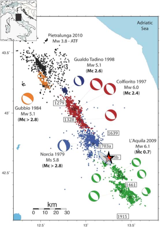 Con o senza anomalie, osservando le lunghe sequenze sismiche del 1979, del 1984, del 1988, del 1997-98 e del 2009 (vedere anche didascalia), c'era in tutta evidenza da aspettarsi che si sarebbe attivato, più prima che poi, il segmento appenninico colpito il 24 agosto.