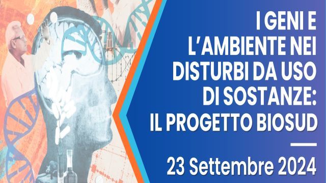 Si terrà il lunedì, 23 settembre 2024, presso l'Aula Magna del Dipartimento di Bioscienze, Biotecnologie e Ambiente dell'Università degli Studi di Bari, in via Orabona 4, Bari, l’evento dal titolo “I geni e l'ambiente nei disturbi da uso di sostanze: il progetto BioSUD".